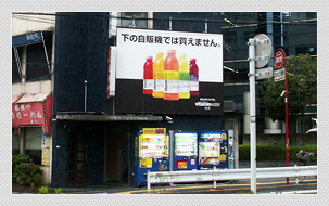 ビルボードの下には、競合メーカーの自販機が設置されています。